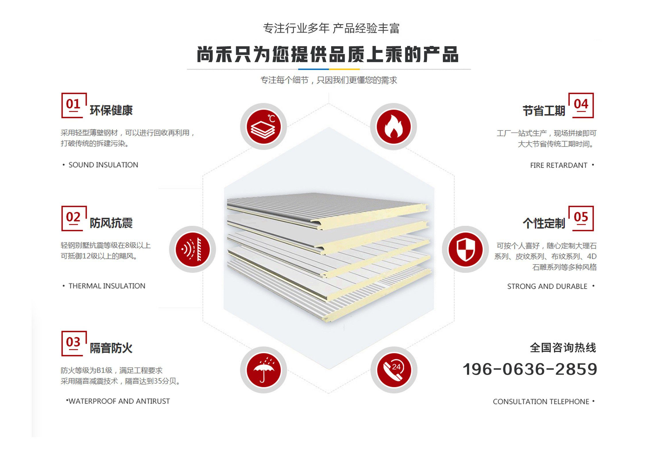 山東尚禾經(jīng)貿(mào)有限公司是集板材設(shè)計(jì)、研發(fā)、生產(chǎn)、施工、一體化的科技公司,并在同行業(yè)中率先通過(guò)了質(zhì)量、環(huán)境、安全管理體系認(rèn)證。公司2011年投入資金2000余萬(wàn)元引進(jìn)世界先進(jìn)的聚氨酯節(jié)能板連續(xù)生產(chǎn)線、意大利進(jìn)口發(fā)泡系統(tǒng),采用六組份在線自動(dòng)操作混合澆注技術(shù),在線一次性完成社會(huì)配料中心或工廠的配比混合工藝,并可以根據(jù)溫度在線自動(dòng)調(diào)整,從而生產(chǎn)處與眾不同的高強(qiáng)度、節(jié)能型、綠色環(huán)保的聚氨酯夾芯板。(其使用年限高于同行業(yè)其他品牌5-10年) 公司主要經(jīng)營(yíng)范圍包括聚氨酯夾芯板,PU夾芯板,冷庫(kù)板,潔凈板,聚氨酯冷庫(kù)板,冷庫(kù)保溫板的設(shè)計(jì)、生產(chǎn)、銷售、技術(shù)指導(dǎo)、安裝及一體、以及進(jìn)出口業(yè)務(wù),是中部六省最大的綠色節(jié)能建材生產(chǎn)基地。聚氨酯夾芯板年產(chǎn)200萬(wàn)平方米、PU夾芯板、冷庫(kù)保溫板500萬(wàn)平方米、鏈整產(chǎn)業(yè)綜合實(shí)力,開(kāi)創(chuàng)了六省至中西部創(chuàng)新型中小名企總部基地,并將著力推進(jìn)中國(guó)中西部地區(qū)集成房屋住宅產(chǎn)業(yè)化發(fā)展進(jìn)程。 科技創(chuàng)新、節(jié)能典范。千萬(wàn)間始終秉承“誠(chéng)信、合作”的企業(yè)文化精髓,長(zhǎng)期致力于鋼板材結(jié)構(gòu)節(jié)能建筑產(chǎn)業(yè),愿與社會(huì)各界攜手合作,共鑄綠色、環(huán)保美好未來(lái)。 產(chǎn)品具有良好的絕熱、阻燃、隔音、環(huán)保、耐久性能,可廣泛應(yīng)用于工業(yè)、商用建筑內(nèi)外墻、以及民用建筑外墻保溫、空調(diào)通風(fēng)系統(tǒng)、專用防火保溫門等領(lǐng)域。 我們始終秉承...